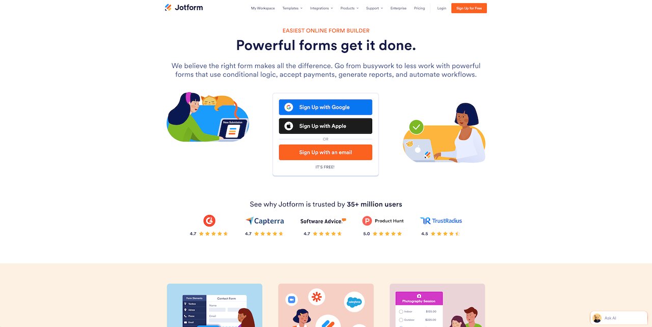 Jotform — Best all-around form builder with over 20,000 templates and tons of integrations. Generous free plan too.1